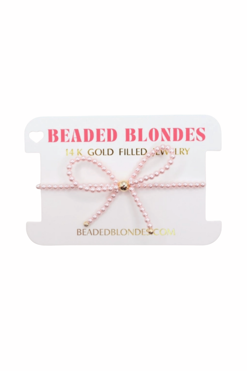 Bows? We love her! Get our iconic Pink Pearl beaded bow bracelet to add to your stack.