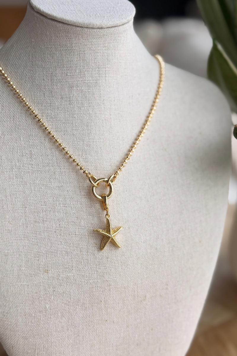 A little coastal magic with timeless style. Our Golden Starfish Charm features a beautifully textured starfish design with a soft gold-tone finish that catches the light just right. Finished with a clasp, this charm is easy to mix, match, and layer! Perfect for adding beach vibes to your everyday look.