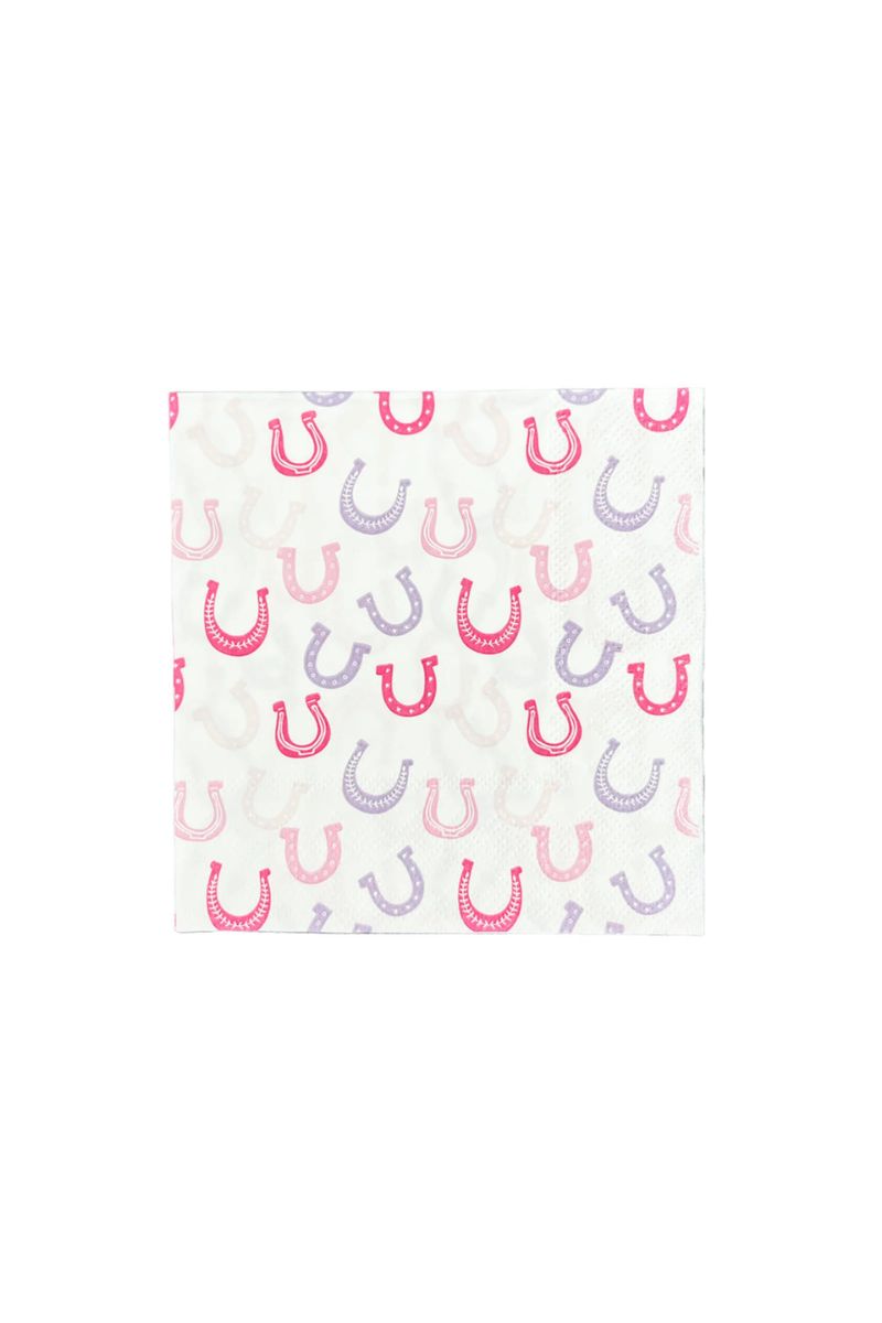 All set for your next rodeo! This adorable petite napkin features a playful horseshoe pattern in shades of pink and purple—perfect for adding a little western flair to the table. 🐎💗💜