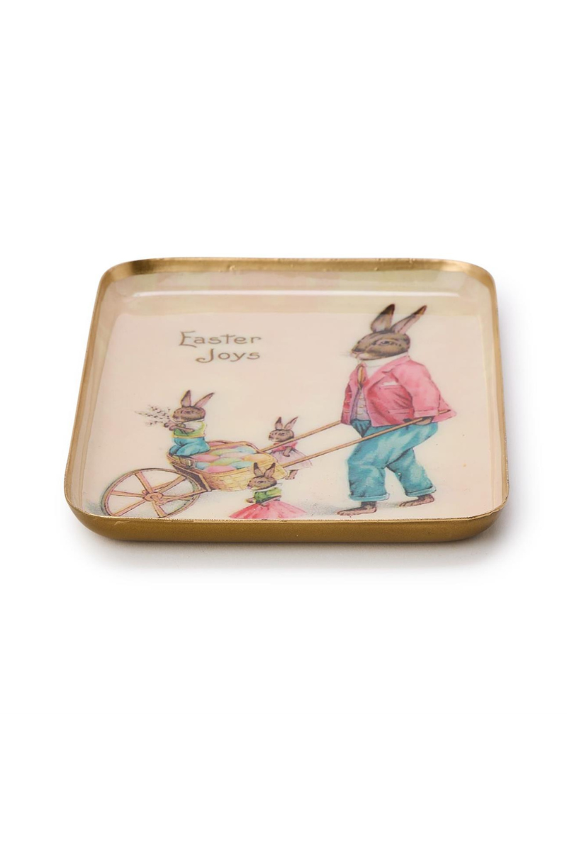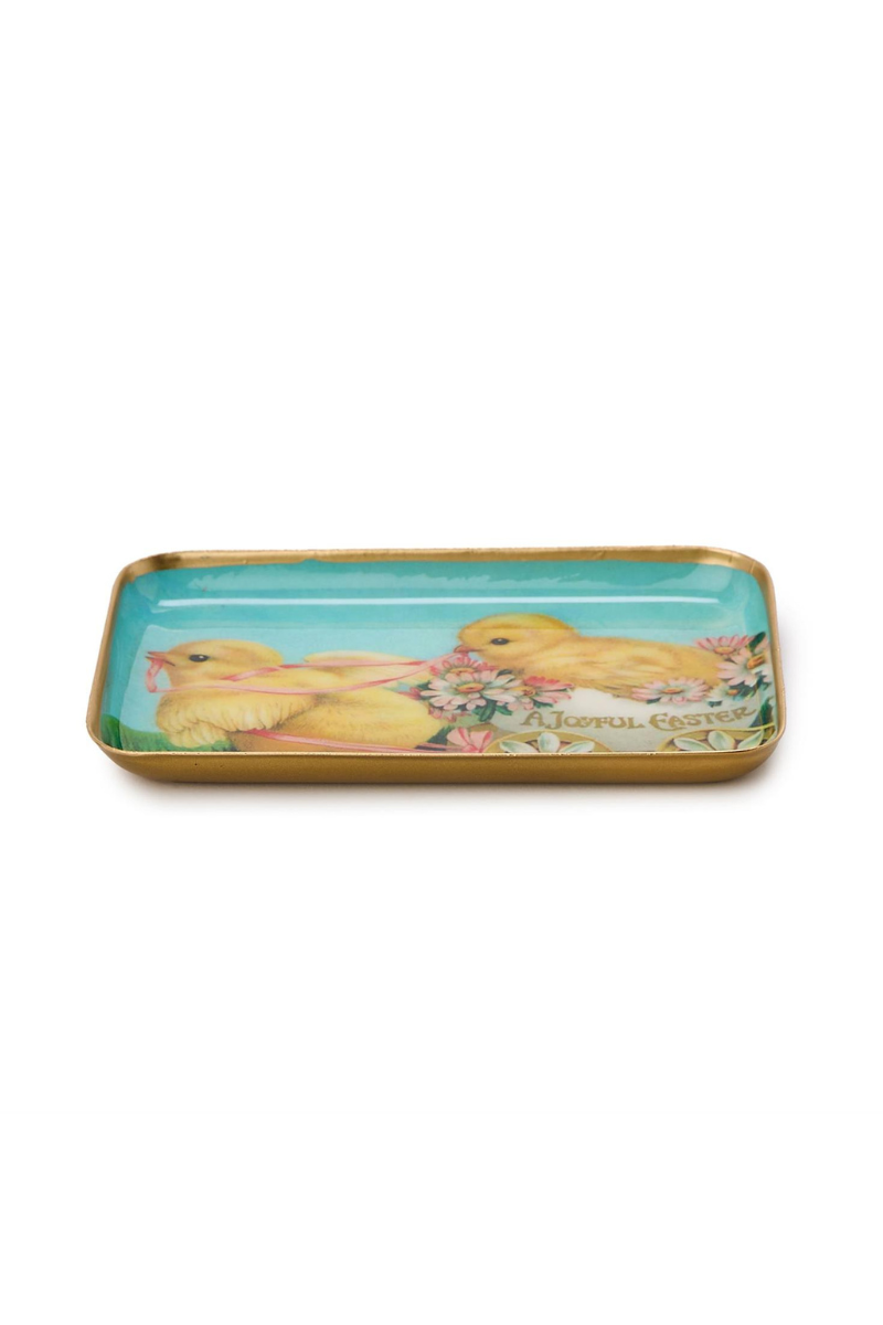 A charming little touch of Easter nostalgia. These vintage-inspired metal trinket trays feature sweet spring scenes—bunnies, chicks, florals, and soft pastel hues—perfect for adding a festive pop to your space. Use them to hold jewelry, keys, or small treasures, or style them as seasonal décor.
