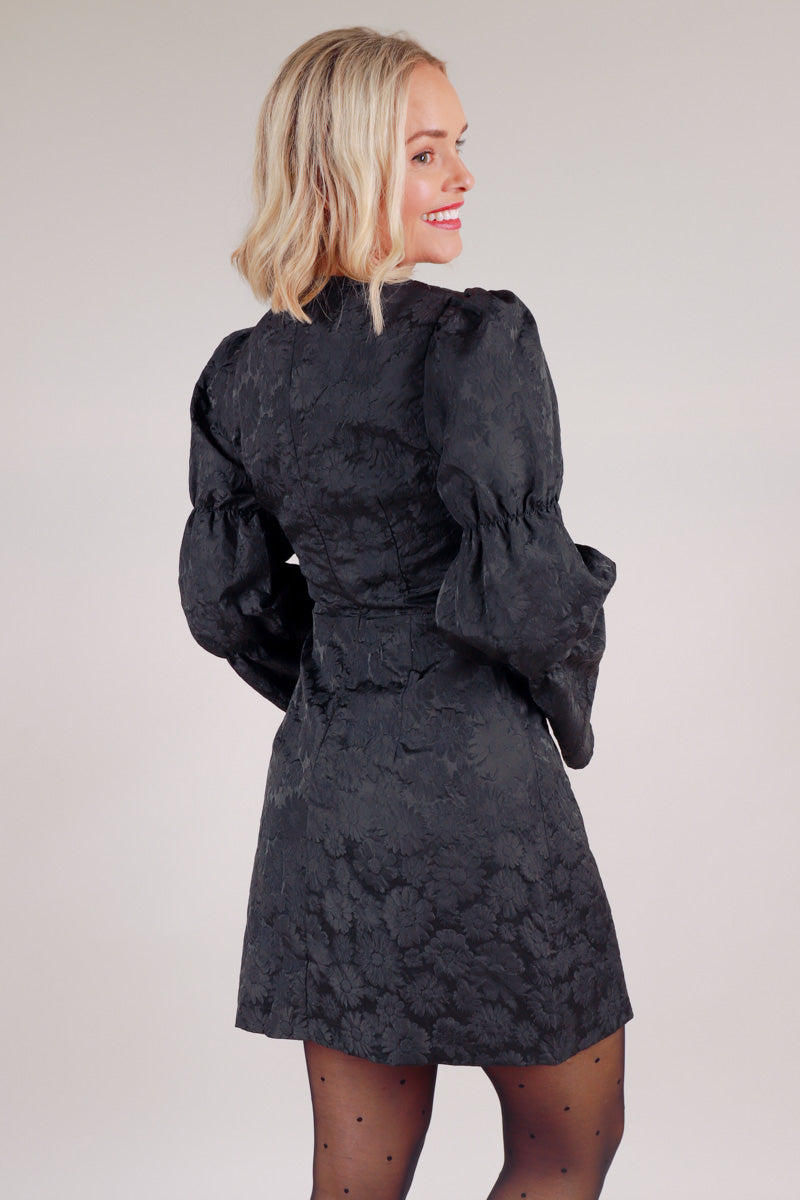 The Nikita Dress in Black is your new go-to for effortless style. This chic mini dress delivers that perfect balance of fun and sophisticated, making it ideal for nights out or casual hangouts. It features a simple yet beautiful floral jacquard print with bubble sleeves. Slip it on and get ready to turn heads with this timeless black essential that works with everything in your closet.