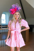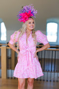 Sweet with a little spice — meet the Lolita Dress. This pink statement mini features a wild-but-whimsical floral and animal print, puff sleeves, a flattering v-neckline, and a playful tie-front waist for a perfectly cinched silhouette. The tiered hem adds extra movement and charm, making it just as perfect for brunch as it is for Derby day. Bold yet romantic, Lolita is your go-to when you want to feel cute, confident, and totally unstoppable.