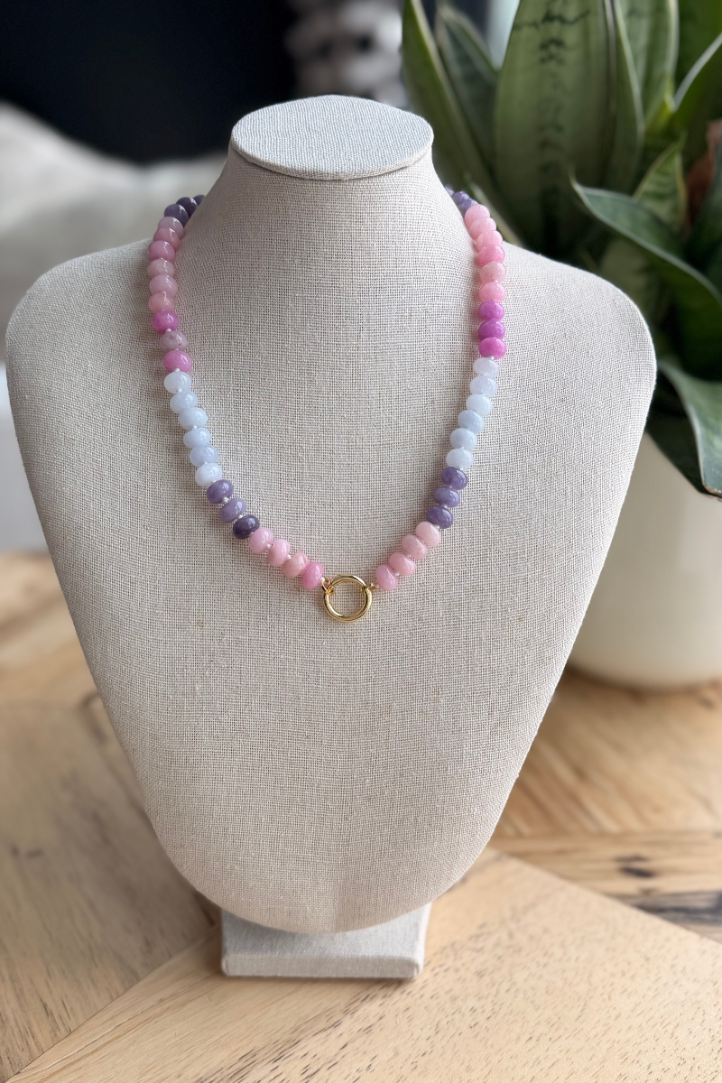 The Confetti Charm Necklace blends soft shades of blue, pink, and purple for a playful yet polished look. With a magnetic clasp that makes adding charms a breeze, this necklace is all about expressing your style and having fun with your jewelry.