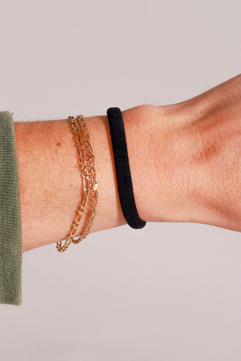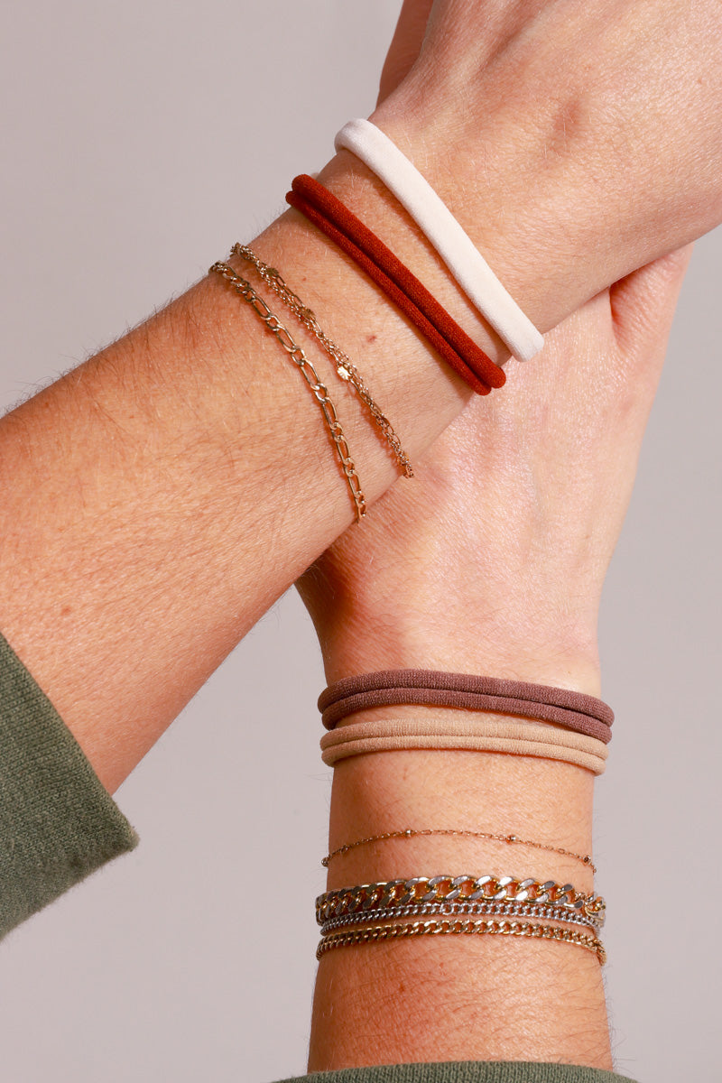 These thick hair ties, L. Erickson Yoga Ponies are a luxuriously laid-back addition to your collection. Composed of soft stretchy fabric, the eye-popping ponytail holders are like yoga pants for your hair; durable, comfortable, and most importantly, fashionable. Great hair bands for thick hair, the buttery soft fabric is damage-free, frizz-free, and oh so comfortable. Perfect for quick and easy on-the-go styling, you'll want to stash these fabulous hair ties everywhere!