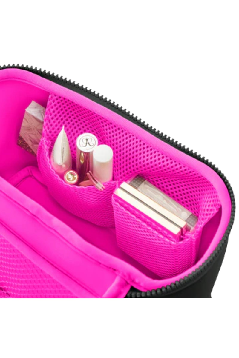 KUSSHI Small Neoprene Train Case-Black/Pink
