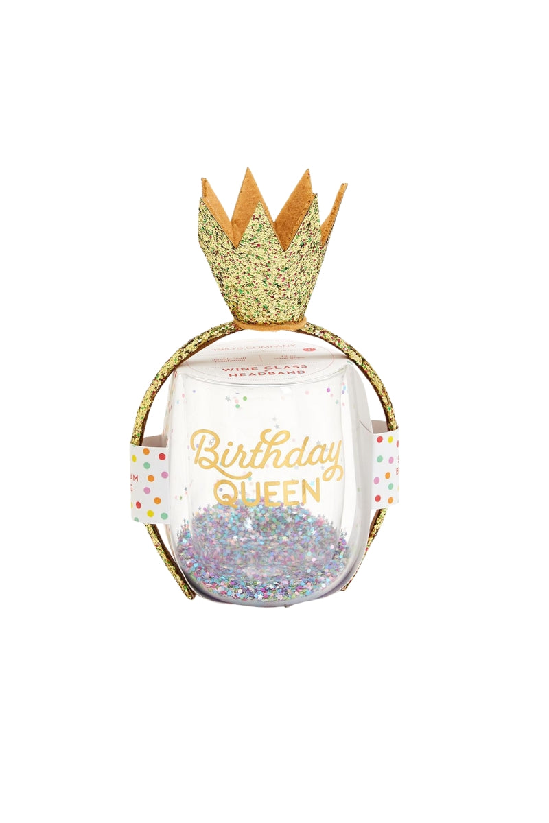 Birthday Queen Wine Glass & Glitter Crown Headband
