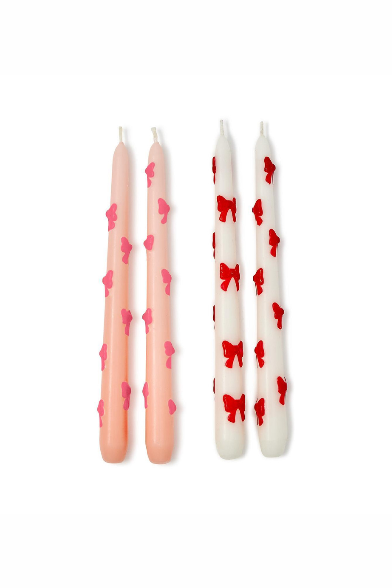 Pretty in pink 💕 This set of 2 hand-dipped pink taper candles adds a soft, romantic glow to any space. Adorned with dainty pink bows running along the length of each candle, they’re equal parts sweet and striking—perfect for dressing up your table, mantel, or next celebration.