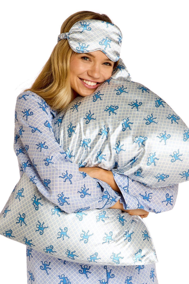 Transform your bedroom into a luxurious haven with our Happy Monkey Print Satin Pillowcase and Eye Mask Set. Crafted from sumptuous polyester, this set exudes elegance and comfort in equal measure. Whether you choose the vibrant Pop Pink Bow or the serene Sky Blue, rest assured that your slumber will be nothing short of opulent. The perfect gift for yourself or a loved one, each set comes nestled in a charming gift bag.