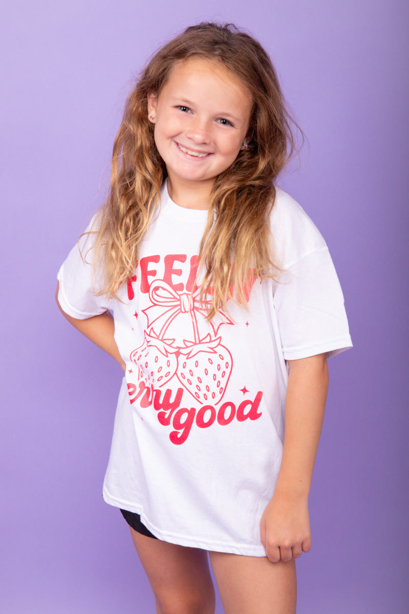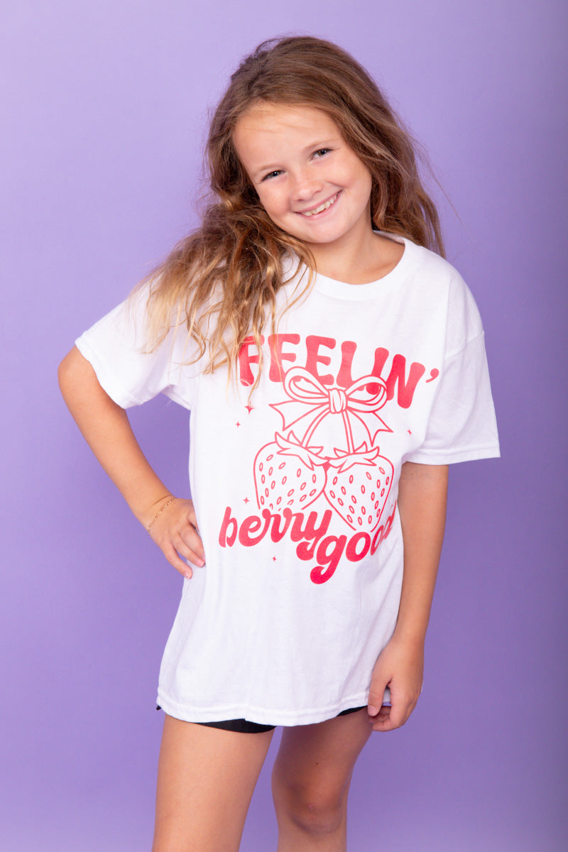 Your little cutie will be feelin’ berry good in this adorable white tee! Featuring playful pink lettering and sweet strawberry graphics, this top is made for smiles and everyday fun. Comfy, soft, and oh-so-cute, it’s perfect for playdates, school days, or just spreading a little fruity cheer!