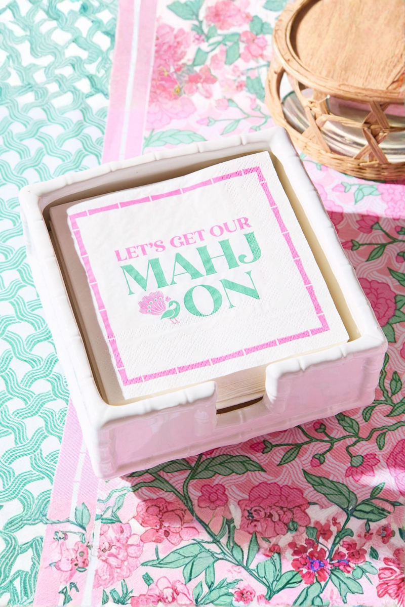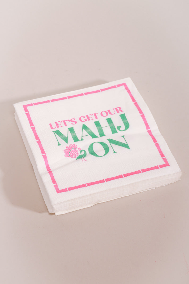 Get your Mahj On! The "Let's Mahj On" 3-Ply Paper Cocktail Napkins is perfect for entertaining in style. These designer napkins feature a chic design that adds a touch of sophistication to any gathering or game time. These napkins are both beautiful and functional.