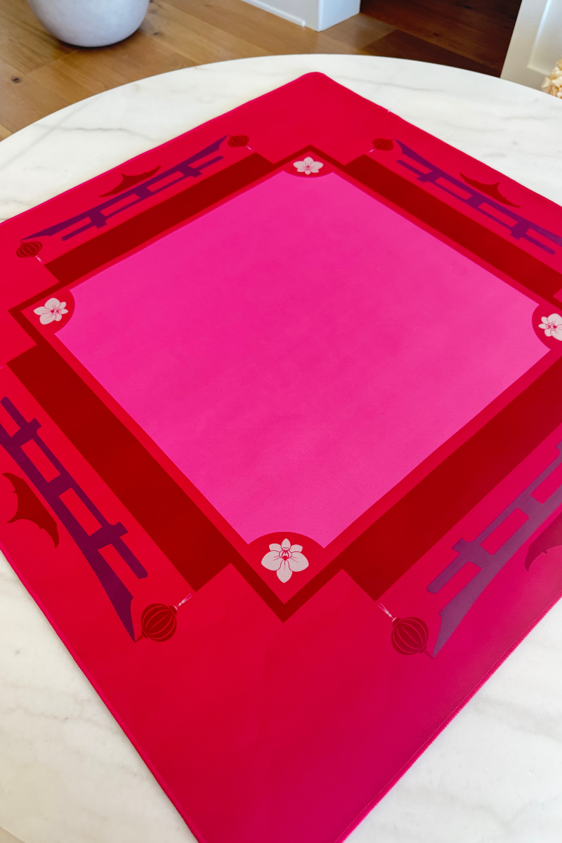 The Pagoda Mahjong Mat is a game night essential. Made from durable neoprene with a non-slip rubber backing, it stays in place and is easy to clean. Sized at 31" x 31", it’s perfect for square tables and versatile enough for dominoes, poker, dice, and more. Rolls up easily and comes with a canvas bag for simple storage and travel.
