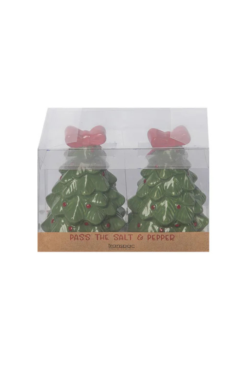 Add a touch of festive charm to your dining table with these cute Holidays Trees Salt and Pepper Shaker Set. This delightful set features two beautifully crafted ceramic shakers designed in the shape of Christmas trees, adorned with a lovely green finish that captures the spirit of the holiday season. Perfect for indoor use, these shakers not only serve a practical purpose but also act as a whimsical decoration that enhances your holiday table setting. Ideal for gift giving, they make a thoughtful hostess gift or a delightful addition to your own collection. To keep them looking their best, simply hand wash after use. Celebrate the season with this enchanting salt and pepper shaker set that brings joy and style to every meal.