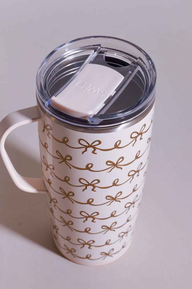 For those who love our classic 18oz Travel Mug but need a little bit more in their cup, our 22oz Insulated Travel Mug is a must-have. With more ounces to sip and a cup holder-friendly shape, she's got what it takes to get through the morning commute and the rest of your day.
