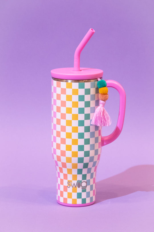 Mega sips, mega chill! š§ Check Mate your hydration game with this colorful rainbow design.