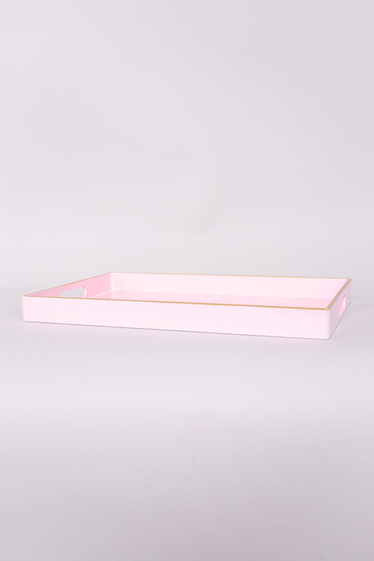 Serve it up in style with the Pretty In Pink Rectangular Tray! Fashionable meets function with this square resin tray. In the house or outside on the deck, this tray features functional side handles perfect for transporting the rose' and cocktails from the kitchen to the pool. The versatility of the pink color with gold trim allows you to use it as a statement decor piece in your kitchen or living area.